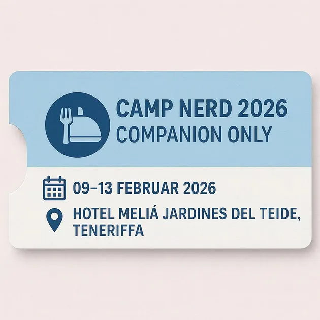 Darin enthalten ist die Kostenpauschale für Catering und das weitere Rahmenprogramm im Camp Nerd.